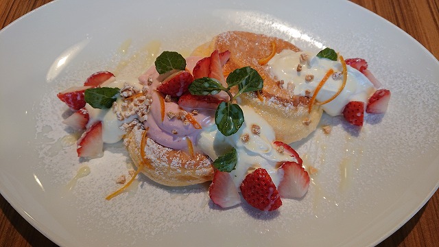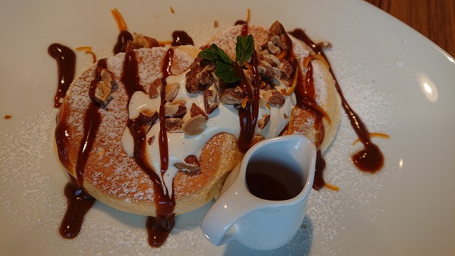 これがめっちゃおいしくて、馴染みのパンケーキも、ひと味違う感じデシタ(^^♪