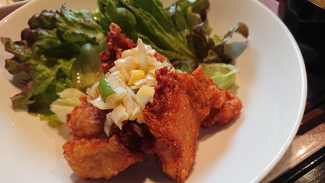 今日のランチはとり唐揚げネギソースかけだよ🍗