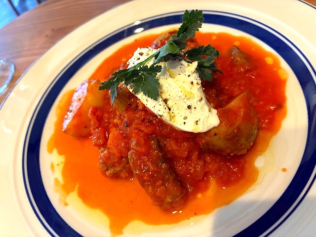 お友だちは、クリームチーズムースを乗せた豚肩ロース、豚バラ肉のトマト煮込み✨
