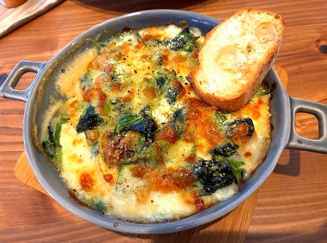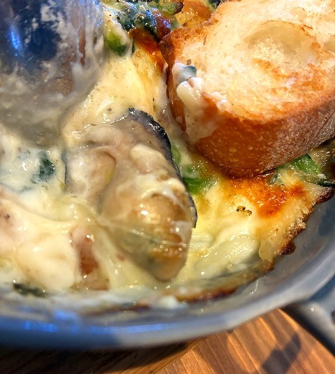 okarieは、牡蠣とほうれん草のマカロニグラタン✨ どちらもミニバゲット付きですよ