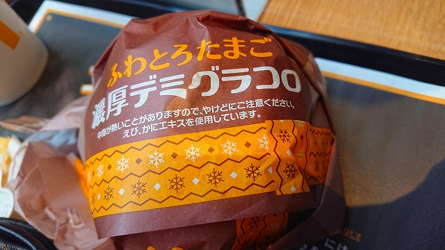 okarie → ふわとろたまご濃厚デミグラコロ、アイスコーヒー、ポテト半分