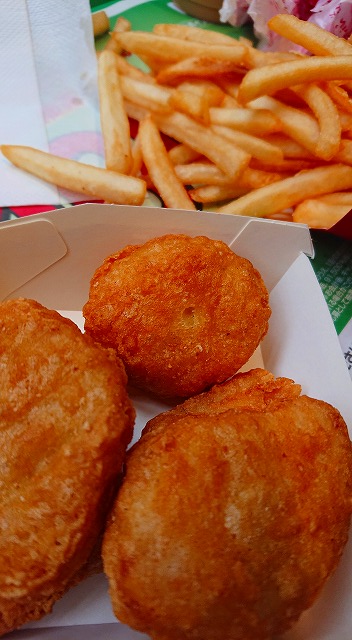 娘 → ダブルチーズバーガー、ナゲット、ポテト半分、白ぶどう、キャラメルフラッペ