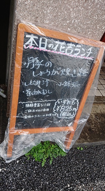 メニューボード、雨が降ってたから、レインコート着てます(^^♪