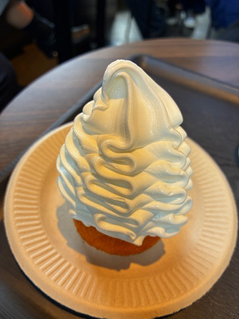 バームクーヘンをチョイス。 ソフトクリーム乗っけてくれるって、こんなに!!