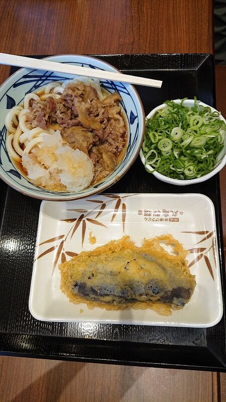 パパさんは、鬼おろし肉ぶっかけうどん と、ナスの天ぷら(アプリで30円引)