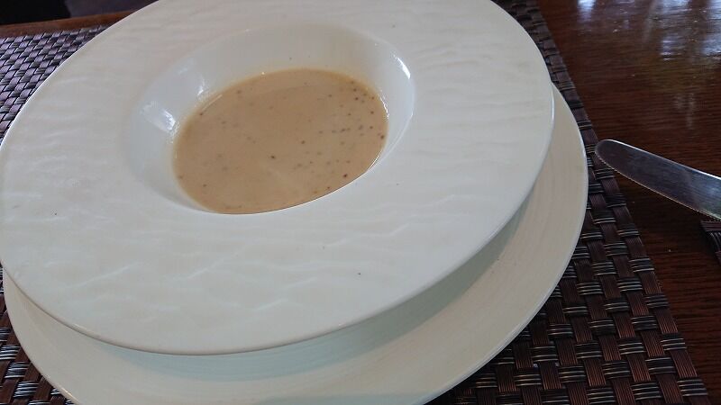 まずは、、、、ステーキについてきたスープです、さつまいもだって?