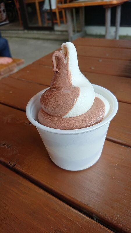 豆乳ソフト、バニラとチョコのミックス、豆腐の味がして美味しいデス?