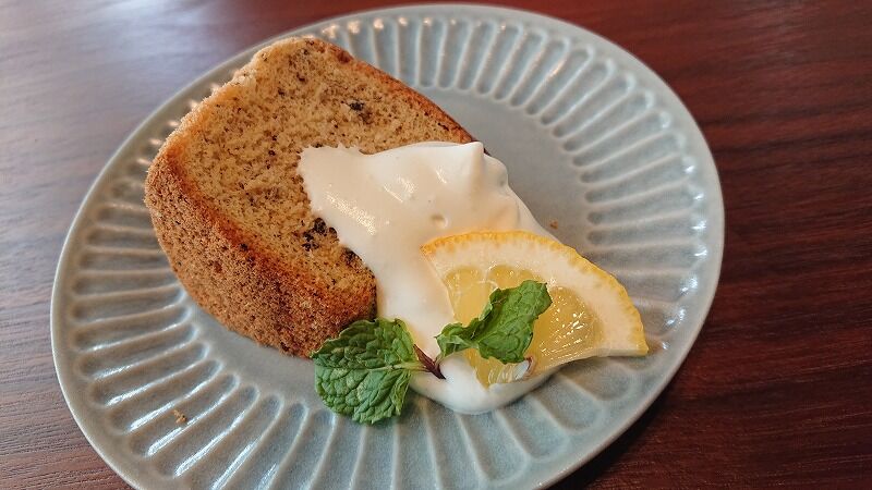 +200円でプチデザートが付いてて、今日は紅茶のシフォンケーキ