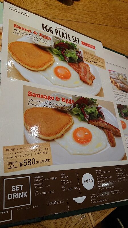 ベーコンエッグセットにしたよ、ドリンク付き、しかも638円![]()