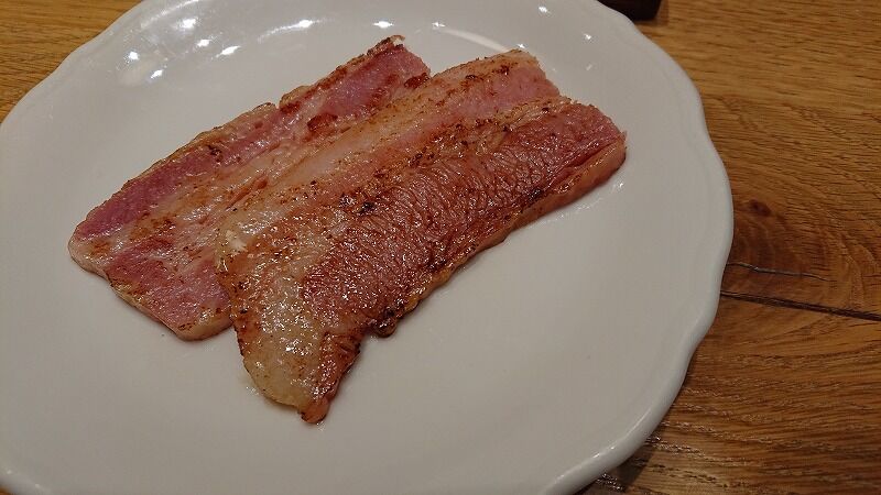 間違えましたと、ベーコンを持って来てくれて、ソーセージはサービスしてくれました![]()