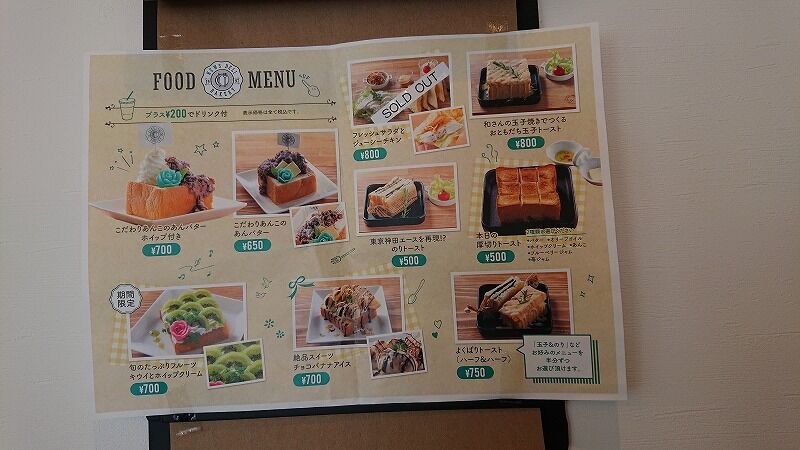 サンドイッチメニューはこんな感じ。ランチですけど、あんこ好きの私たちは、あんバター?