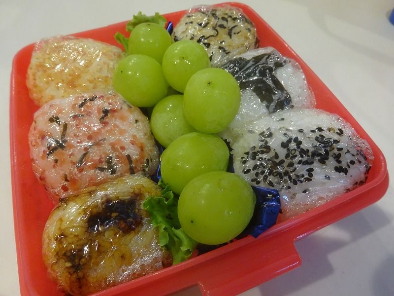 おにぎり全部違う味6個、シャインマスカット![]()