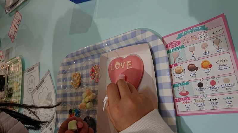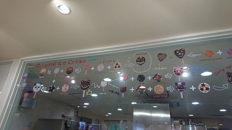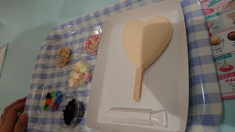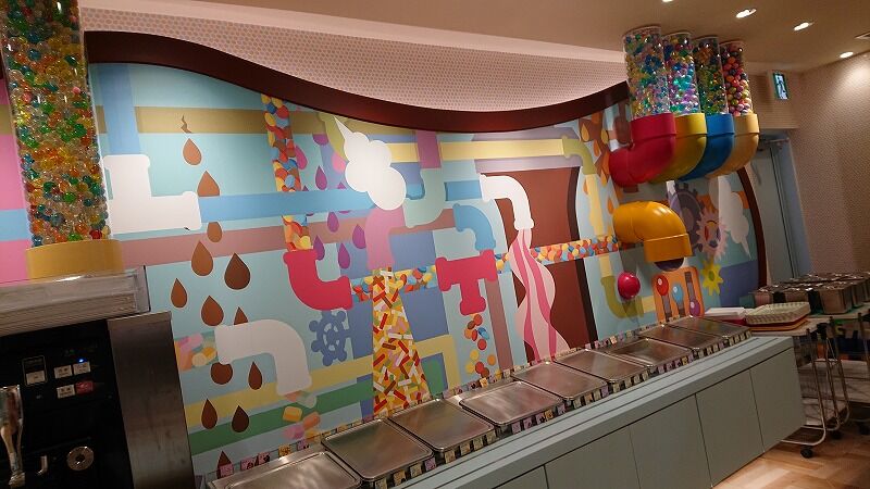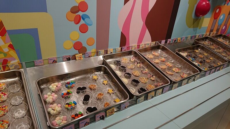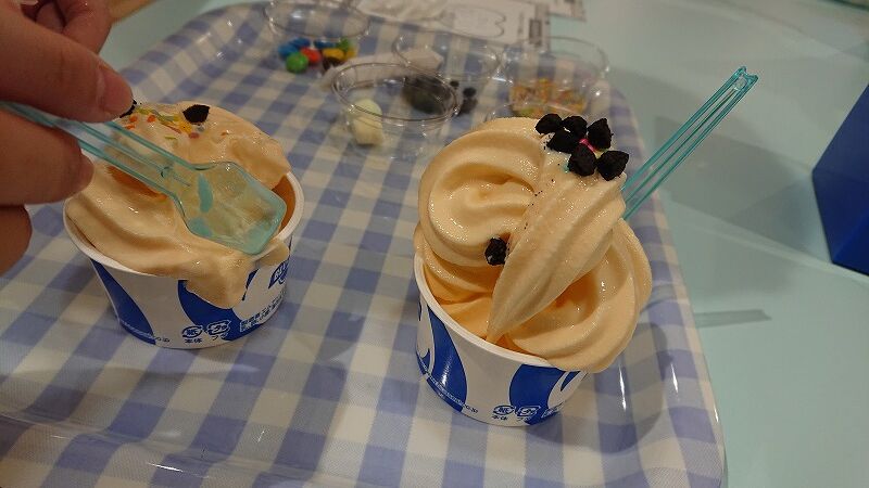 アイスを完成させたら、ソフトクリームのサービス。自分で作るよ、あまったトッピングも使おう