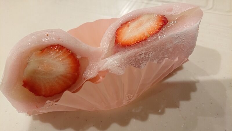 いちご大福と抹茶のいちご大福を買って帰りました![]()