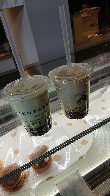 娘はほうじ茶ミルクわらび、okarieは抹茶ミルクわらび![]()
