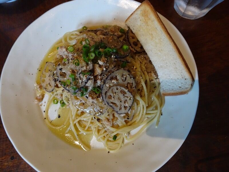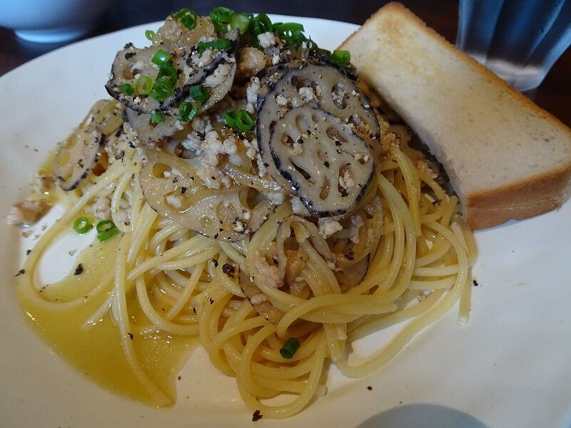 Nちゃんは、タナカレンコンと鶏ひき肉の和風パスタ![]()