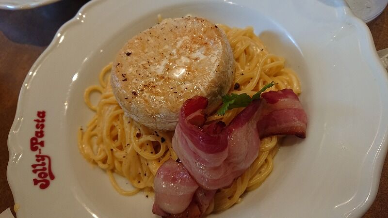 娘は、焼きカマンベールとグリルベーコンのカルボナーラ
