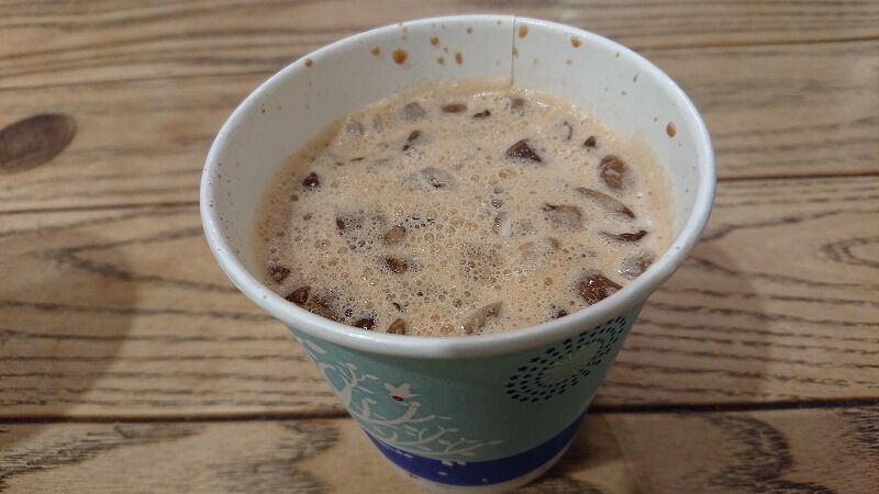 すぐにあきらめて、フリーの休憩所で抹茶ラテを…![]()