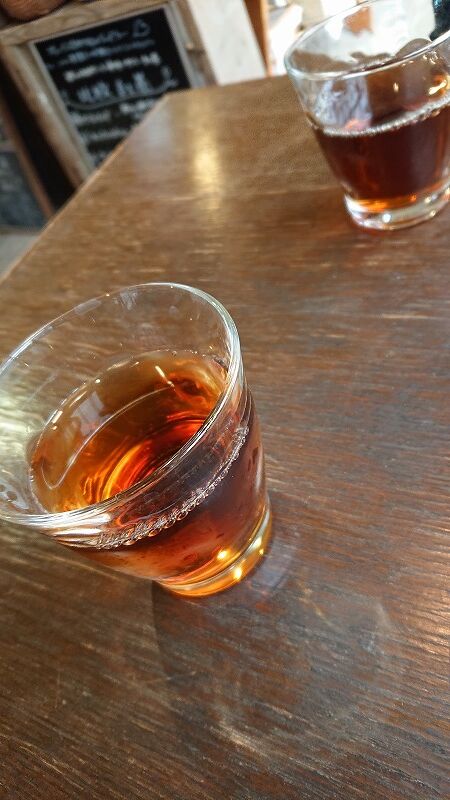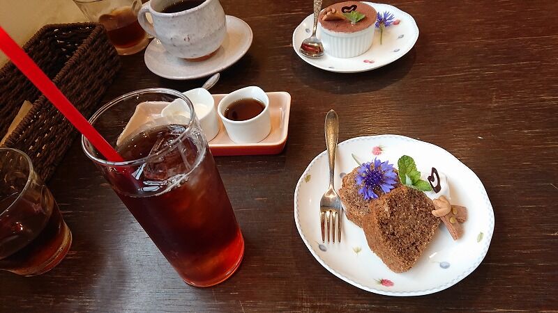 お友達は、オーガニック紅茶(ice)とアールグレイティーケーキ  どっちも紅茶