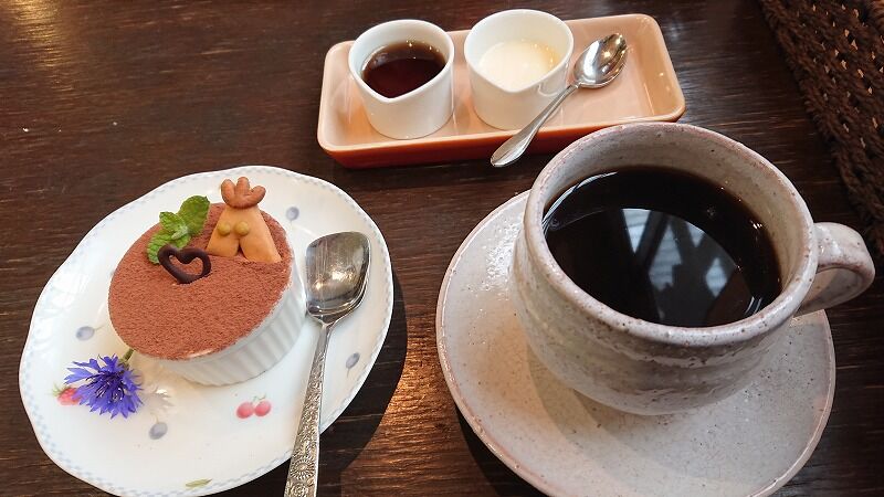 okarieは、オーガニックコーヒー(hot)と、ティラミス