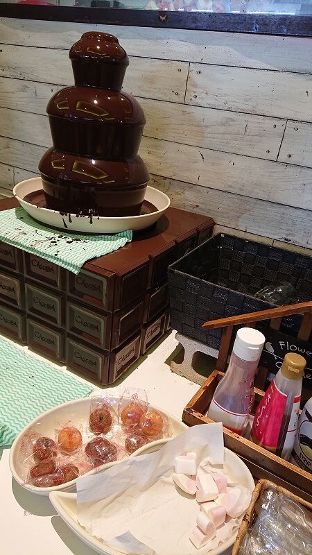 チョコファウンテン、マシュマロとかドーナツつけるのかな![]()