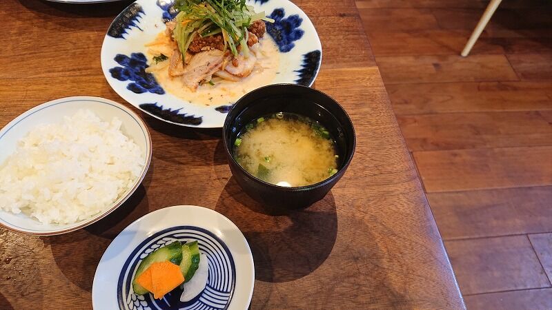 ローストポーク肉味噌豆乳スープ仕立て ご飯お味噌汁香物