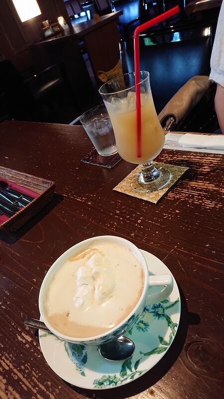お友達はフルーツジュースのグレープフルーツ、okarieは、カフェラテにしました
