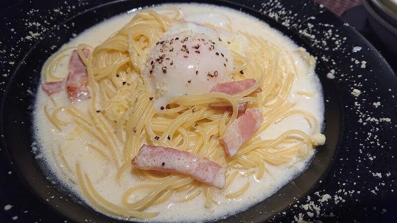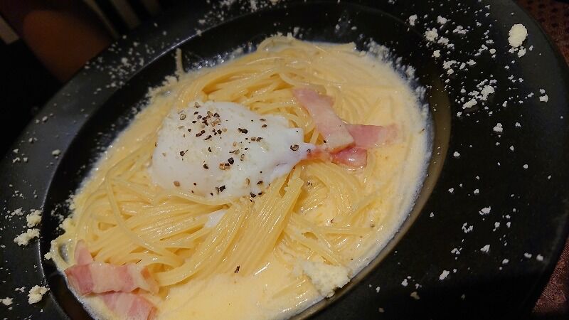 カルボナーラを注文したパパさん![]()