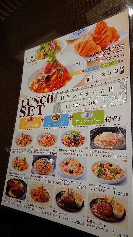 この中から選んで、パンが食べ放題と、サラダとドリンクバーが付いてるよ![]()