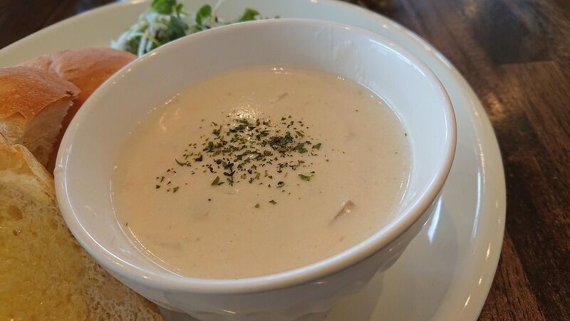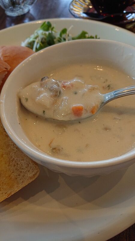 クラムチャウダー好きのМちゃんは、ひとくち食べて「美味しい