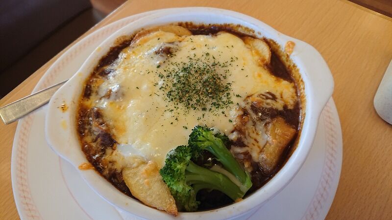 パパさんは、やわらかお肉の焼きカレードリア![]()
