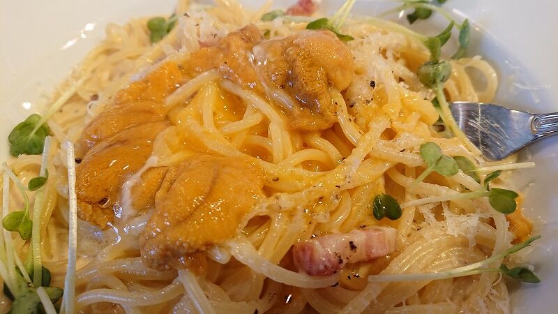 たっぷりうにの濃厚カルボナーラ は、okarieでーす![]()