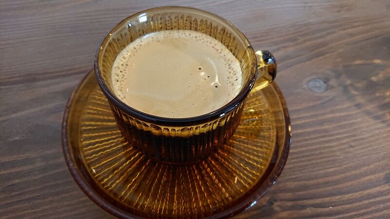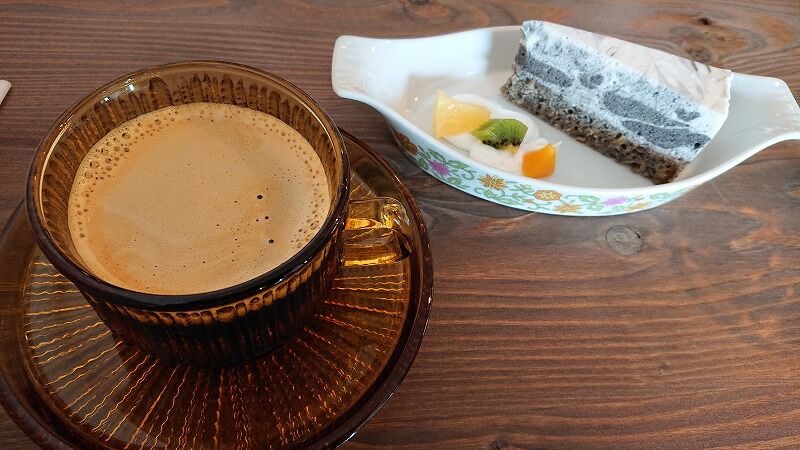 okarieは、ホットコーヒーと黒ゴマバナナケーキ