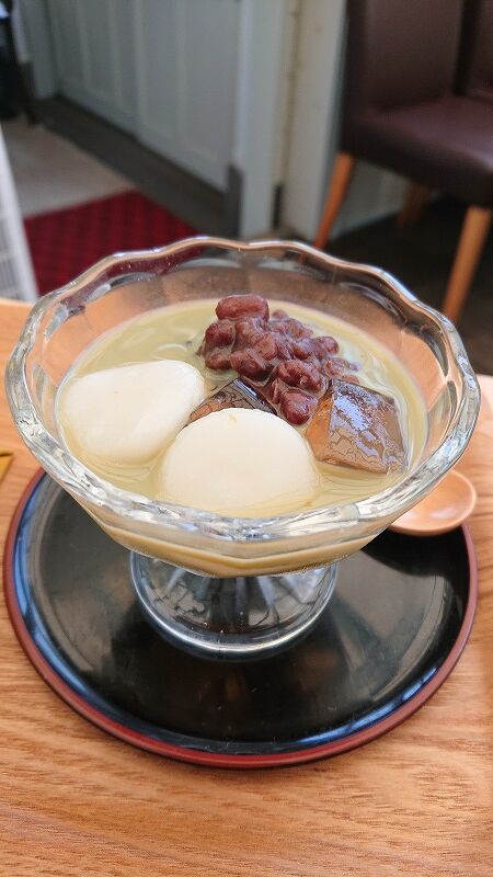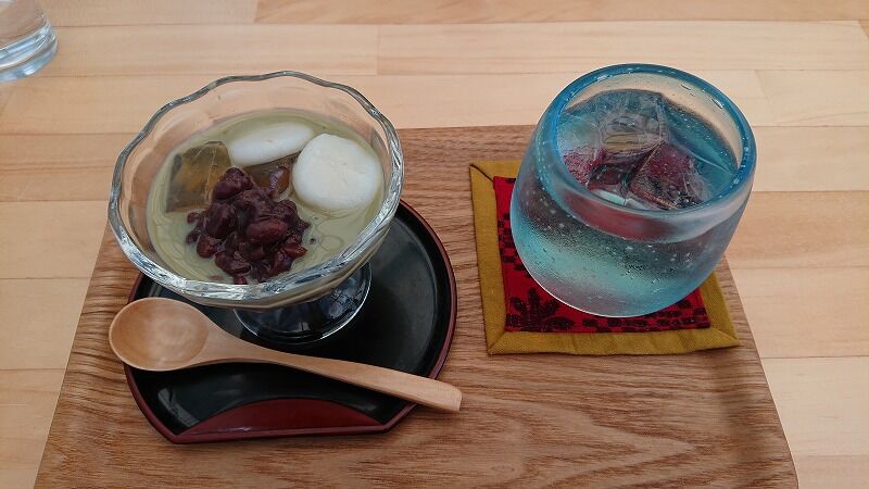 okarieは、梅ソーダと緑茶あんみつ