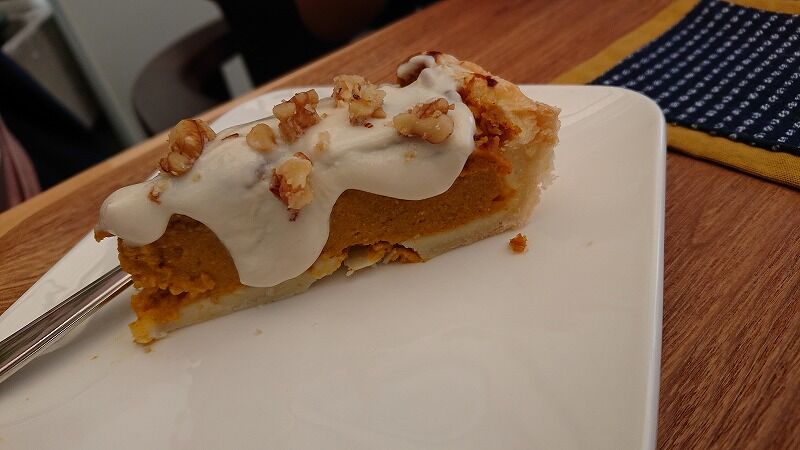 かぼちゃのパイは濃厚で、クリームなしでもイケちゃう感じ