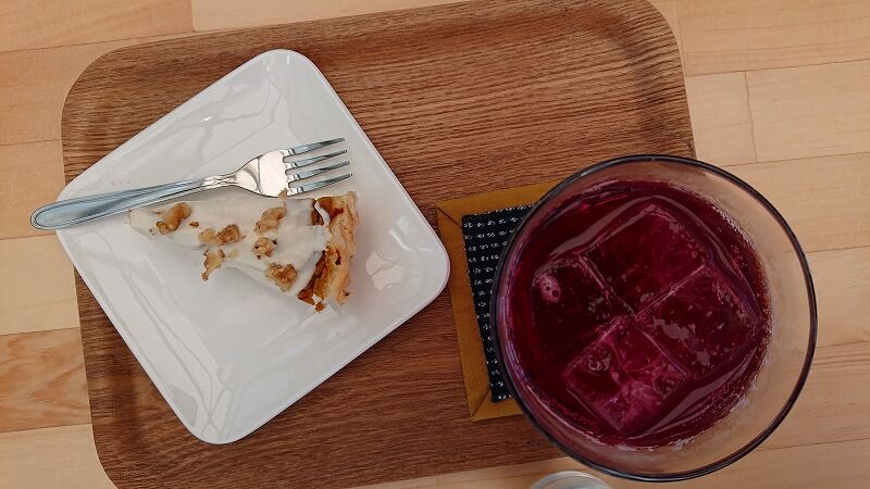 お友だちは、赤しそソーダと、かぼちゃのパイ豆腐クリームかけ
