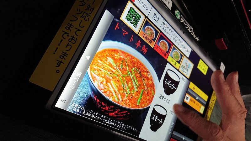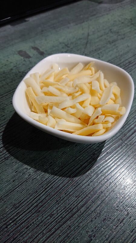 主人はトマト辛麺を選んで、トッピングでチーズが来ましたよ。