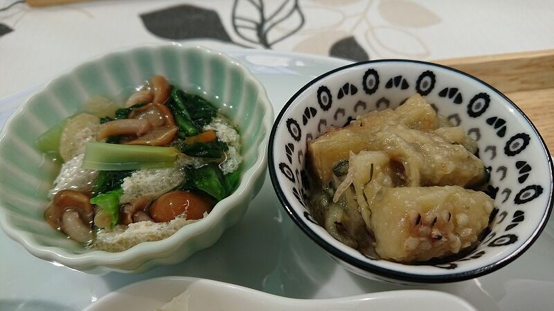 小松菜の煮びたし、焼きナス?