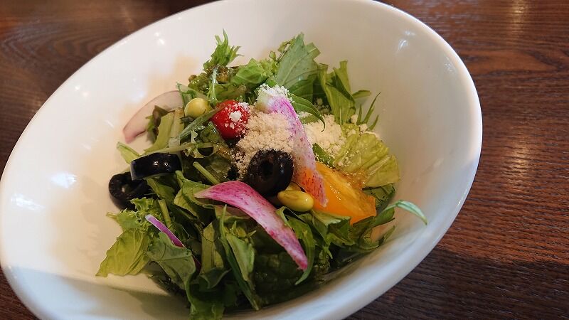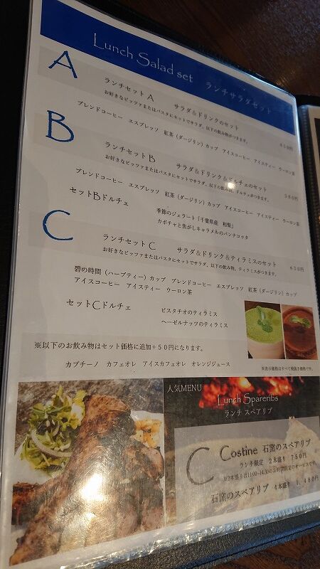 セットメニューCにはサラダとドリンクとデザートのティラミスが付きます