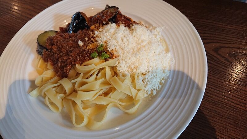 パパさんチョイスの、生パスタ ナスと牛挽肉のボロネーゼ?
