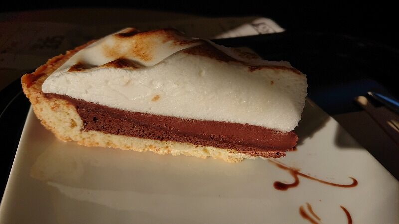 こちらお友達のカフェオレと、チョコレートタルト?