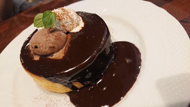 娘は、生チョコレートのスフレパンケーキ