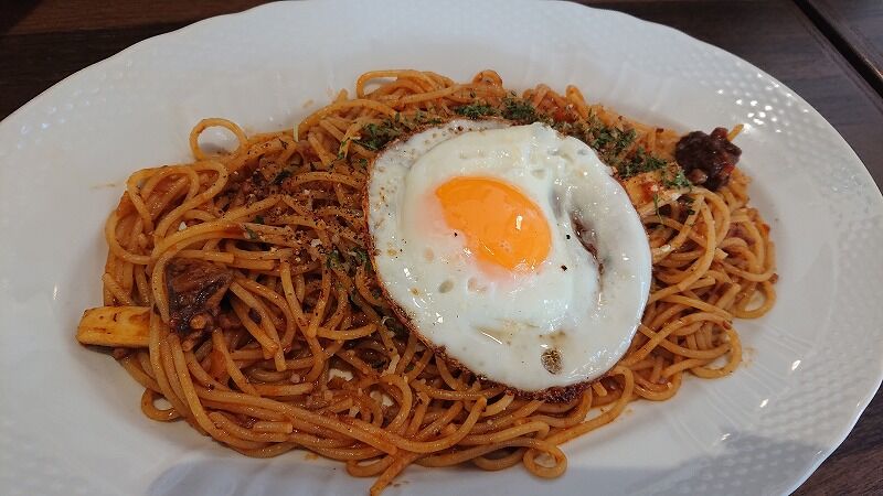 娘は、目玉焼きのせミートソース