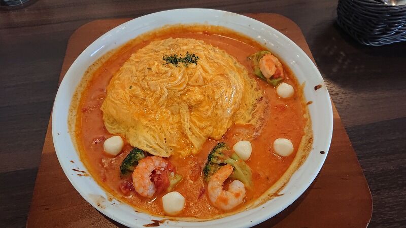 okarieは、海老とモッツァレラチーズのトマトクリームオムライスドリア![]()