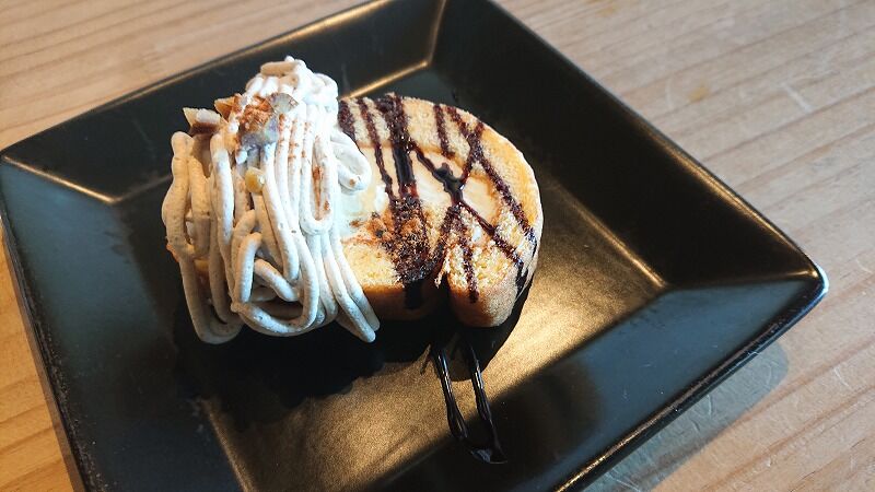 お友だちはミニパフェ、okarieはロールケーキマロンクリーム?