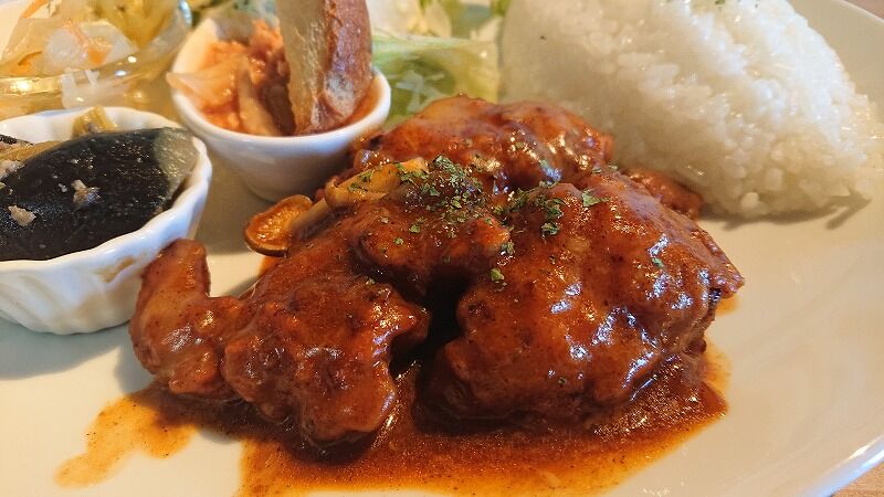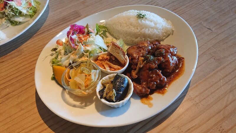 今日の日替わりは、デミチーズチキン&小鉢のプレートです