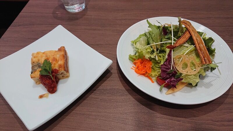 このサラダと前菜が来て、ドリンクとドルチェで+250円ってすごくない