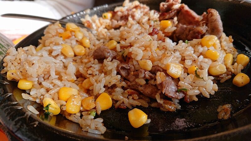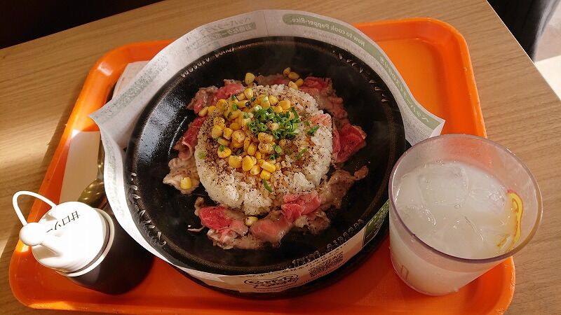 娘はペッパーランチのビーフペッパーライス、いつもSサイズでチーズのトッピングなんだけど、