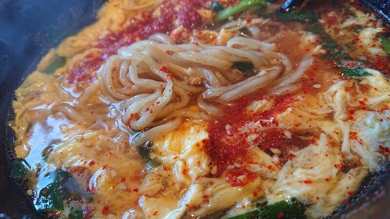 基本の辛麺でーす、5辛にしました~~、全粒だったかな。こんにゃくじゃないの。