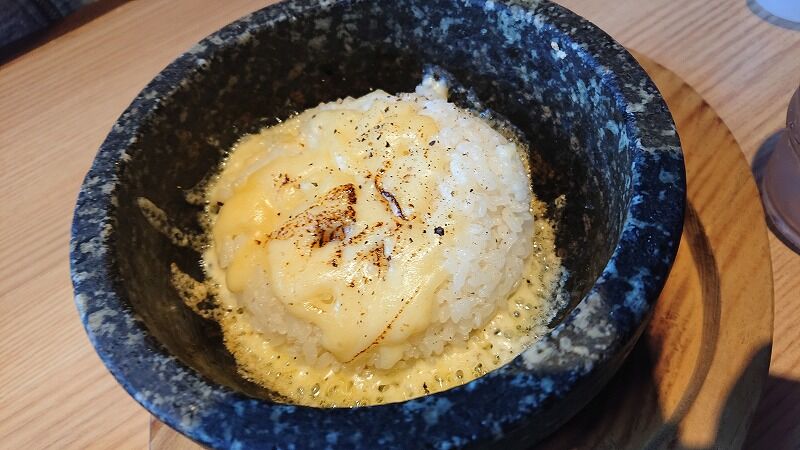 チーズのご飯(辛麺のスープを混ぜるんですが、混ぜなくてそのまま)